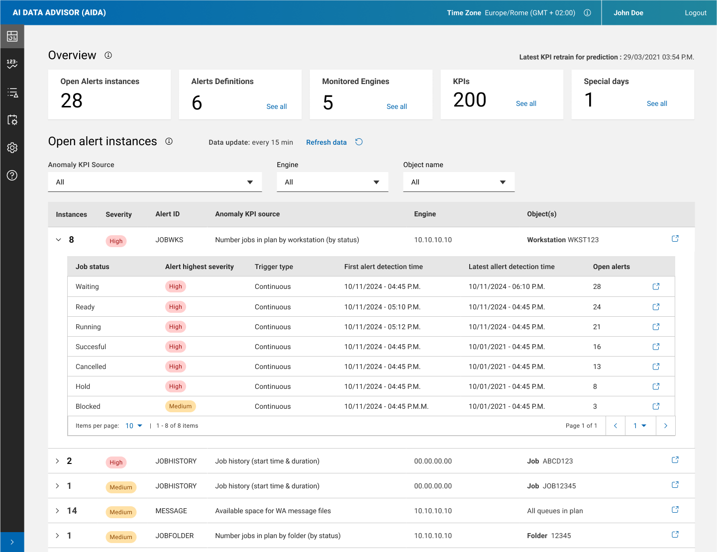 - The subdivision criteria of the alert instances. Depending on the KPI, it can be job status, star time/duration or queue.