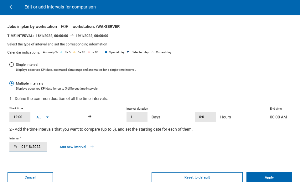 You can customize up to five intervals for comparison.