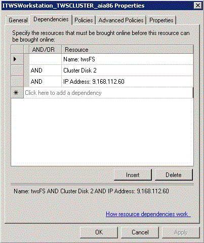 as shown in the following example on Windows Server 2008Figure 1. Resource Dependencies tab (Windows Server