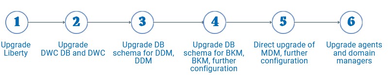 - Upgrading Open Liberty or WebSphere Application Server Liberty Base on the workstations hosting Dynamic Workload Console and the server components (dynamic domain manager and its backups, master domain manager and its backups). You can also optionally move from WebSphere Application Server Liberty Base to Open Liberty.