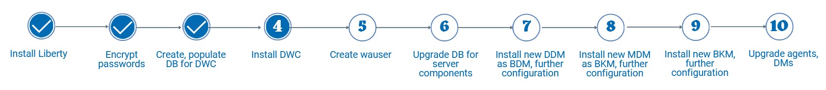 ./dwcinst.sh --acceptlicense yes --rdbmstype db_type --user dwc_admin_user --password dwc_pwd --dbname db_name --dbuser db_user --dbpassword db_pwd --dbhostname db_hostname --dbport db_port --wlpdir Liberty_installation_dir/wlp --sslkeysfolder certificate_files_path --sslpassword keystore_truststore_password