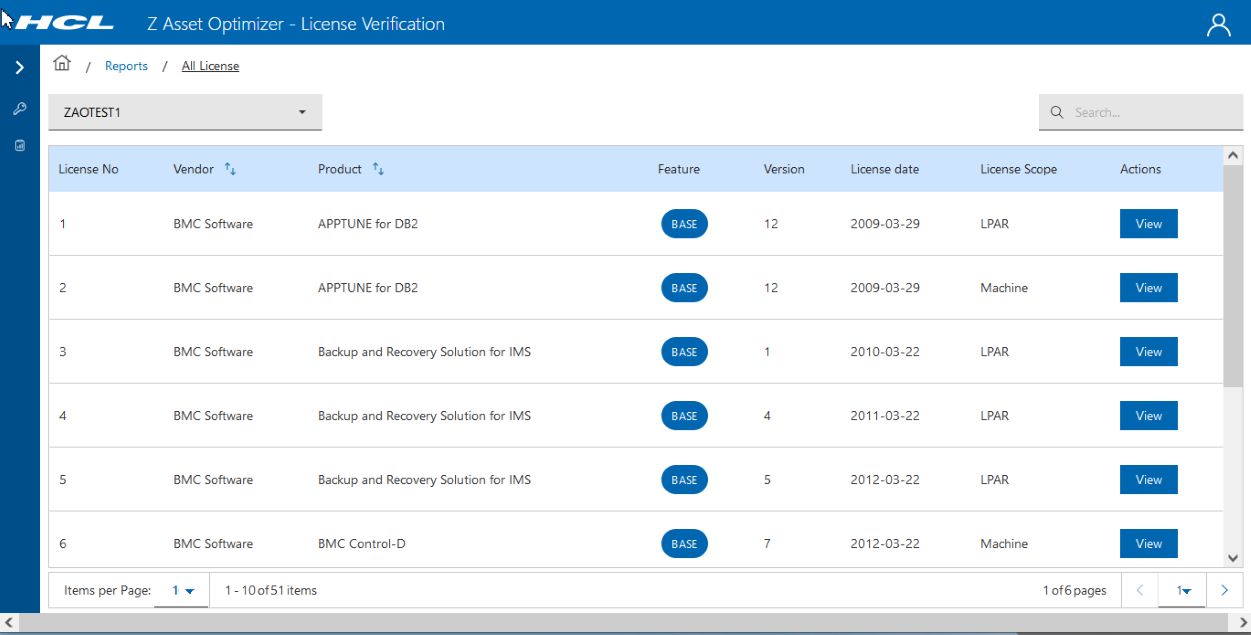 All License report lists the imported license date. You can search on any field using Search button. The initial view is a summary of the imported licenses. The View button against each license gives you further detailed information: