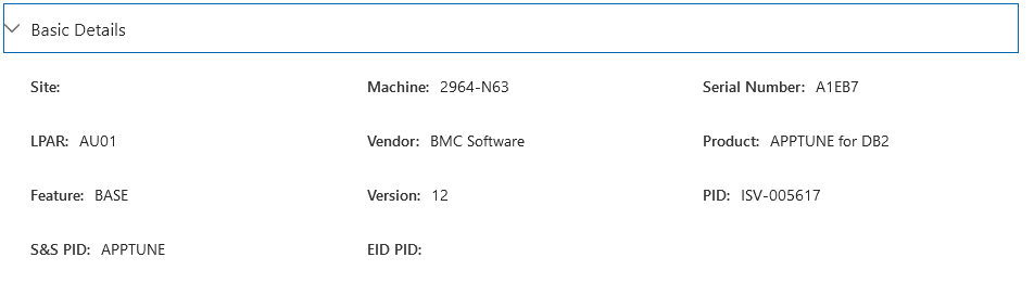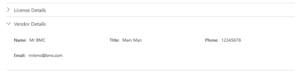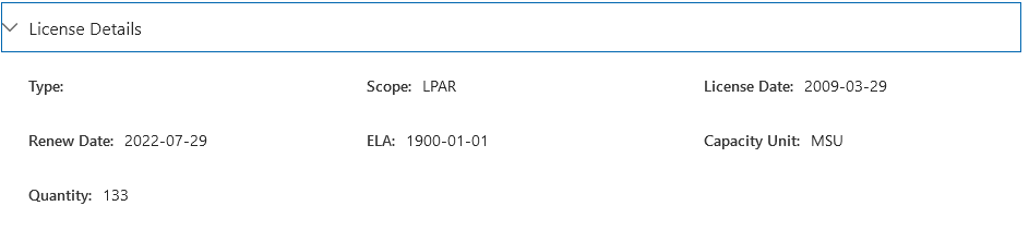 License Details shows details about the acquisition of the license.Note: Currently, only MSU is supported as Capacity Unit. - Vendor Details