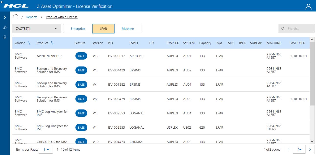 - Run batch job HZASLICV to compare license data against the identified Z Asset Optimizer data and load the results into the License Verification table.