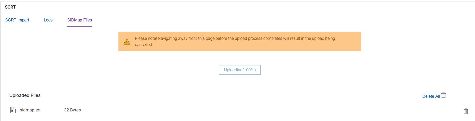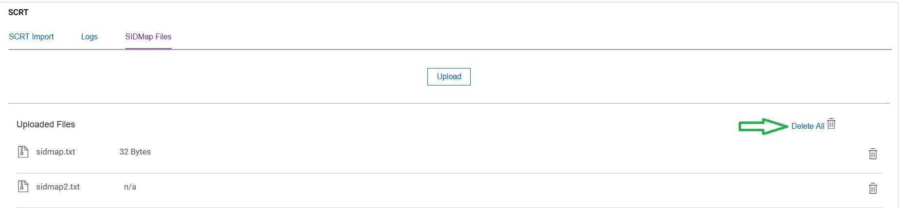 If you wish to delete all the SIDMap files which were uploaded, click the
