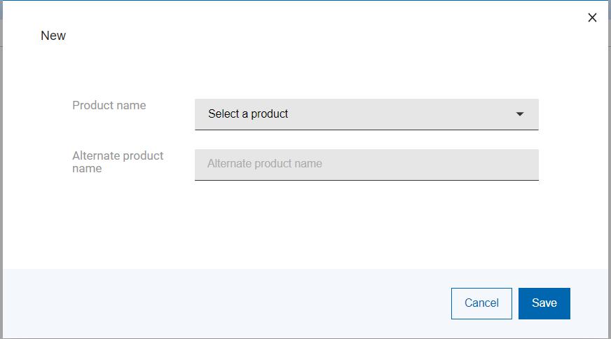 Select the product you wish to create an “alias” name for from the 'Product Name' drop-down list box. Then provide an alternate name for the product in the “Alternate product name” text box.