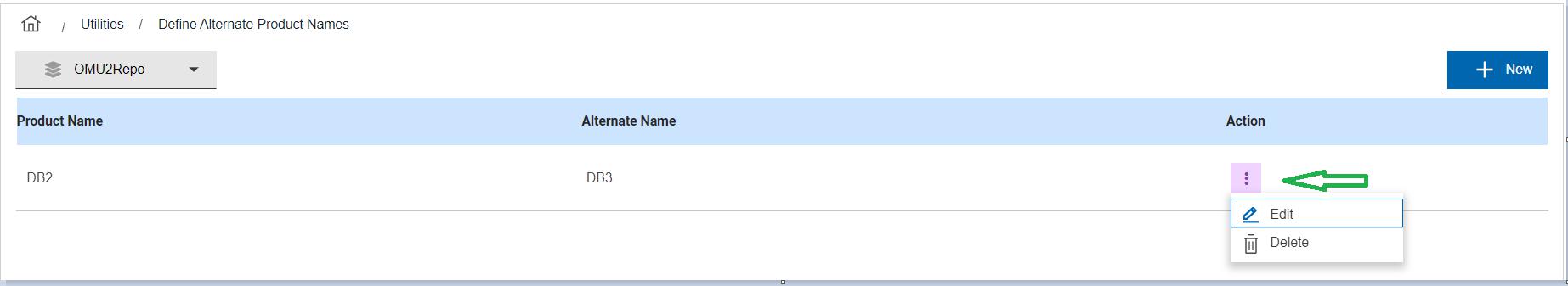 To ‘Edit’ or ‘Delete’ a Alter product name, click the