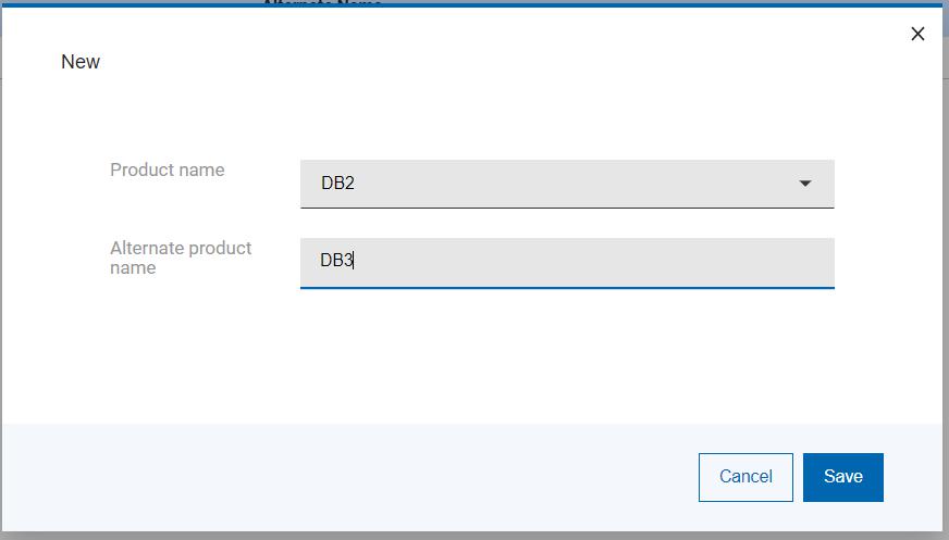 A pop up page is displayed as seen here:Figure 2. Define Alt Product Names Page pop up