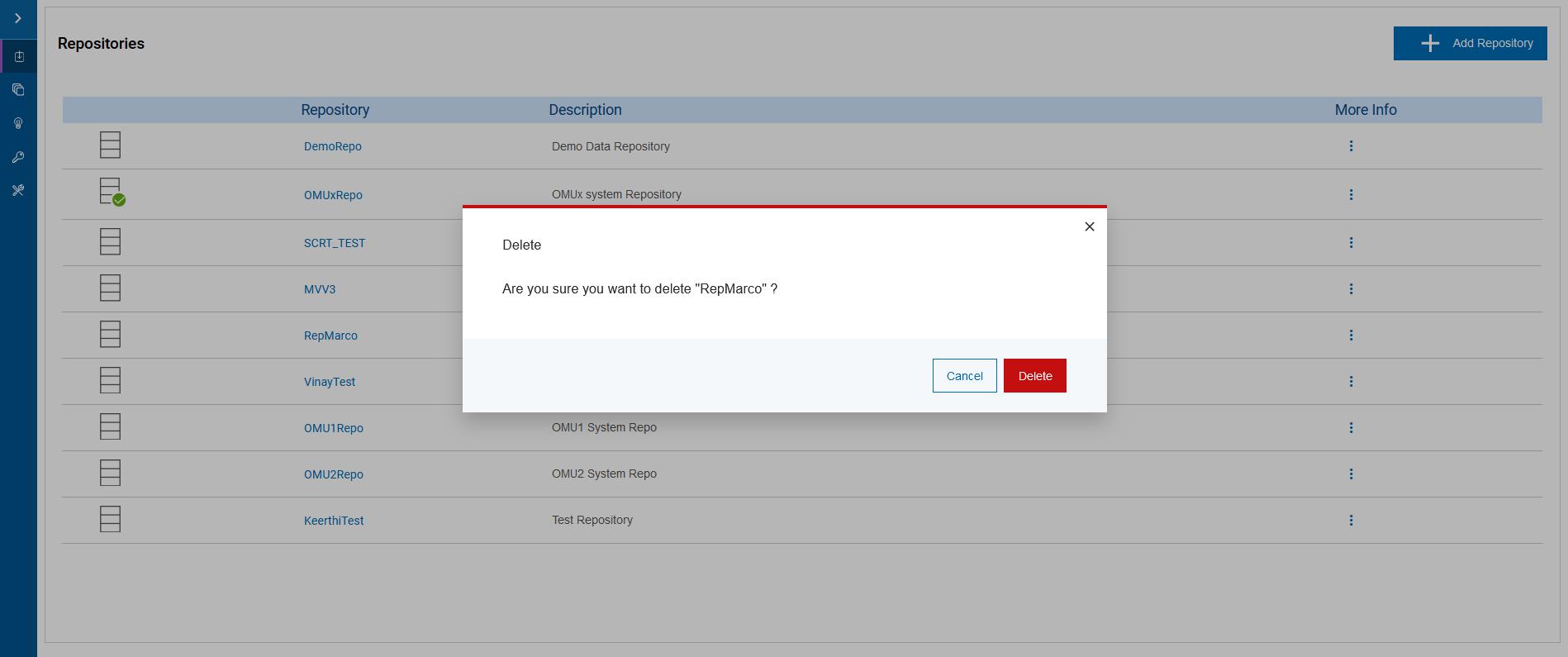 When you click on Delete, the selected repository database will be deleted and the repository name removed from the list as shown below.