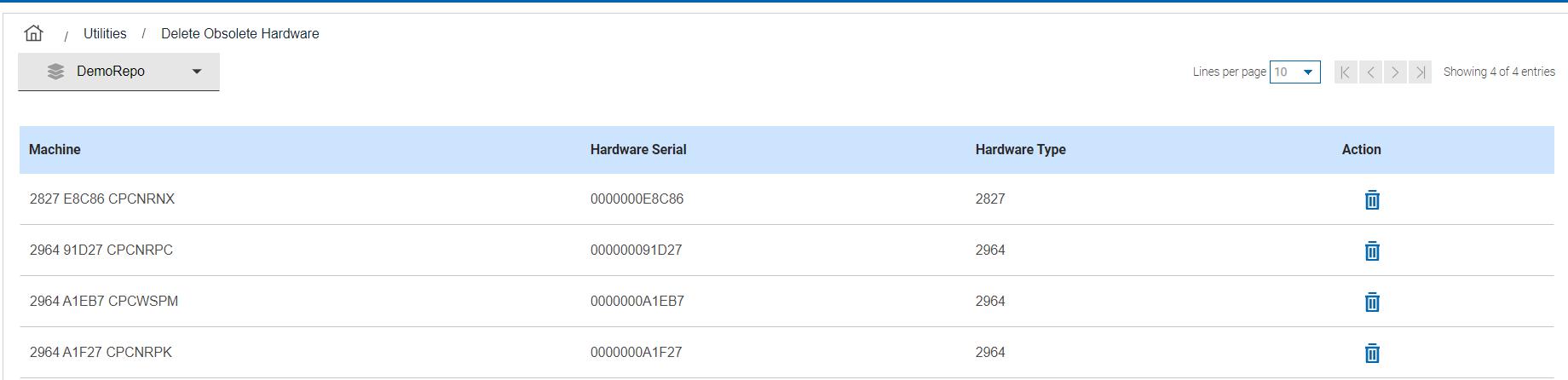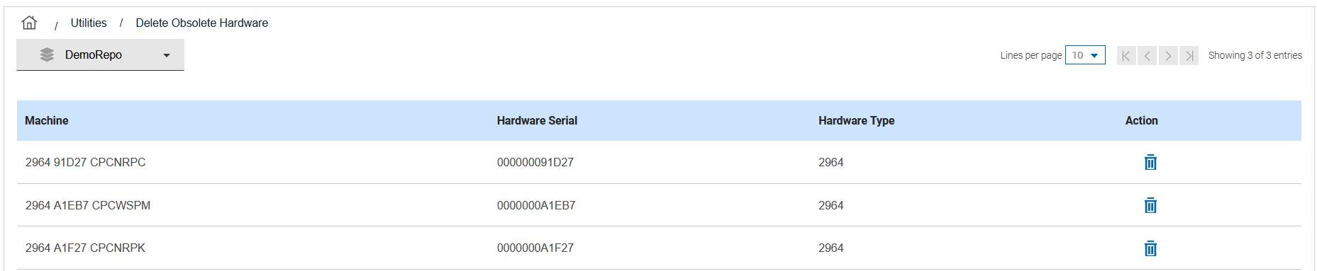 Note: Performing this action is permanent and irreversible.After clicking the Delete button, the deleted machine will no longer appear in the list.Figure 3. Delete Obsolete Hardware selection list