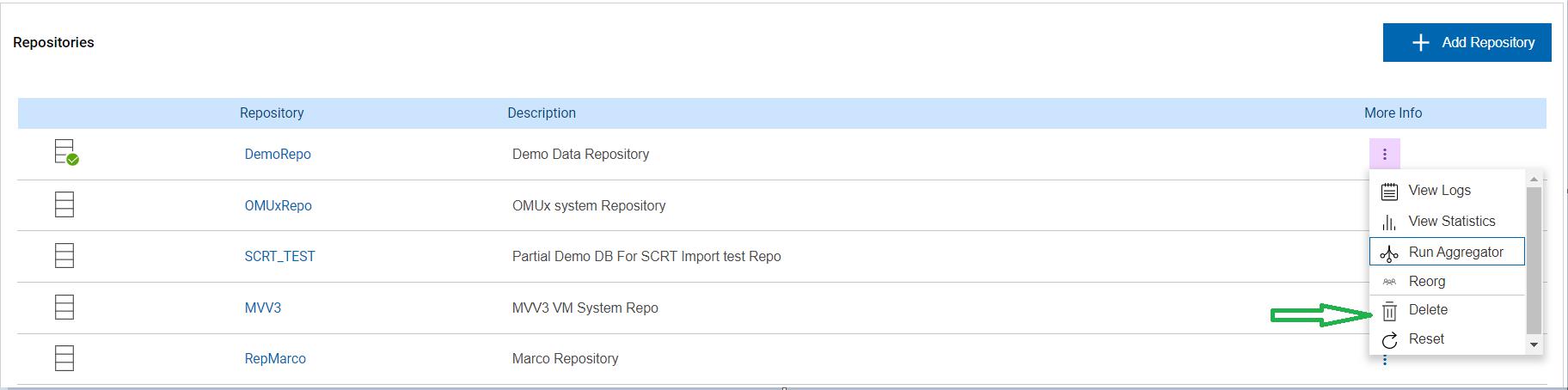 The steps to delete repositories are as follows: