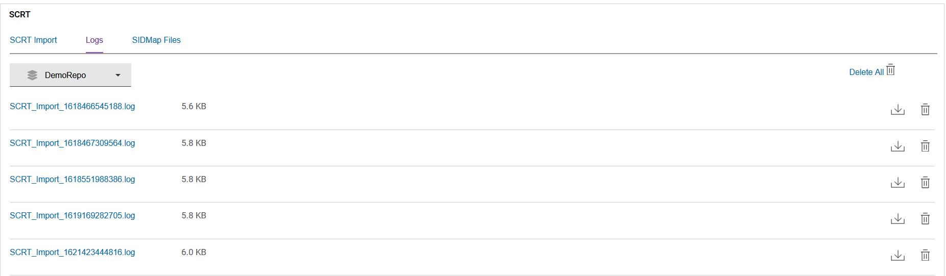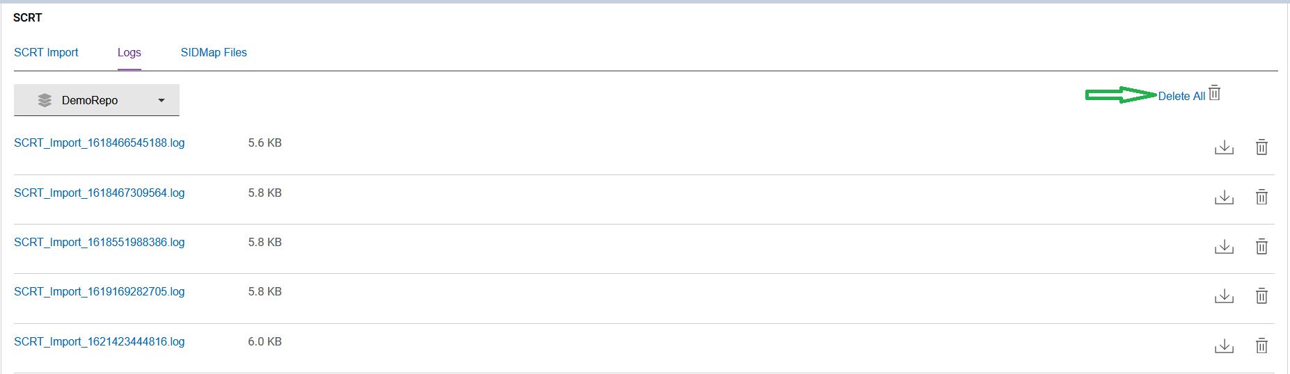 Figure 7. Delete all SCRT Import Log Files