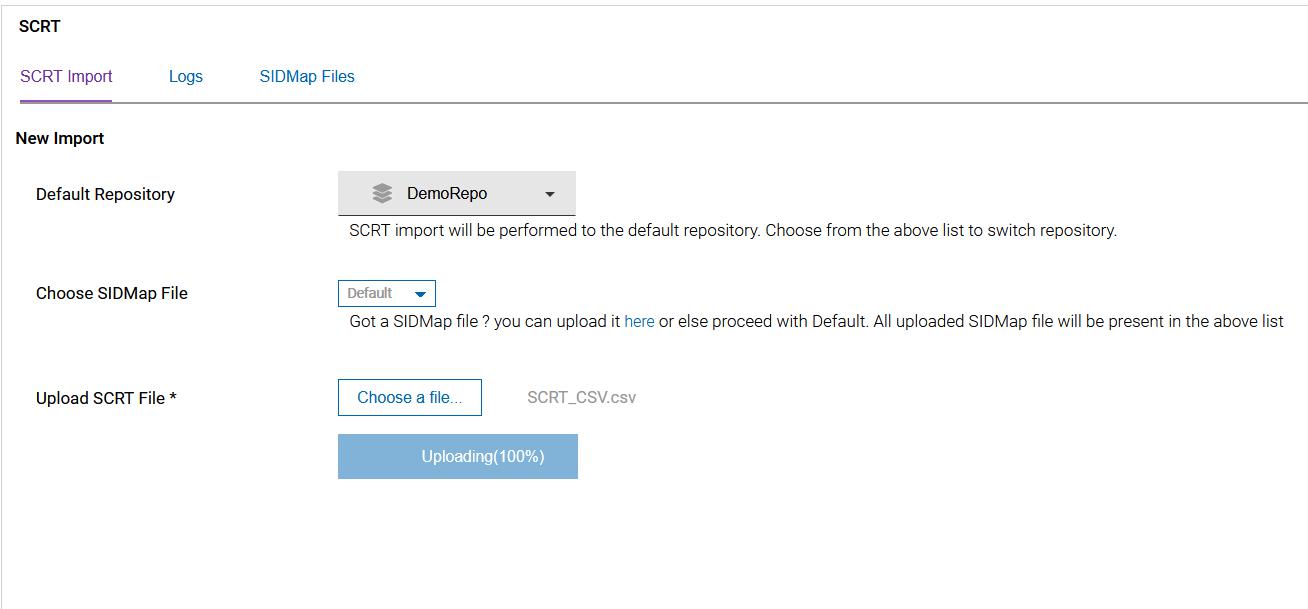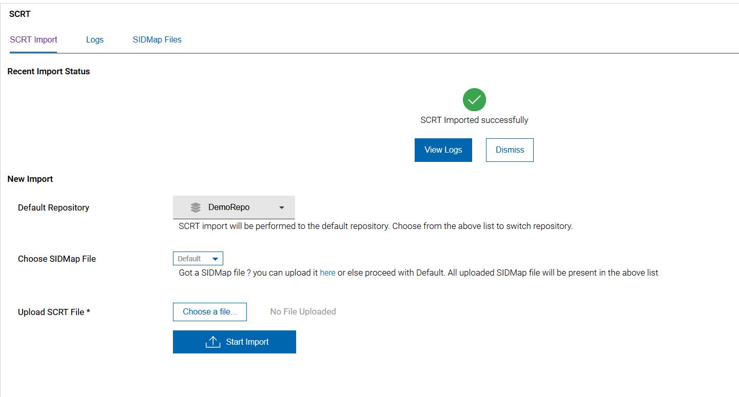 The “SCRT Import” page is displayed.