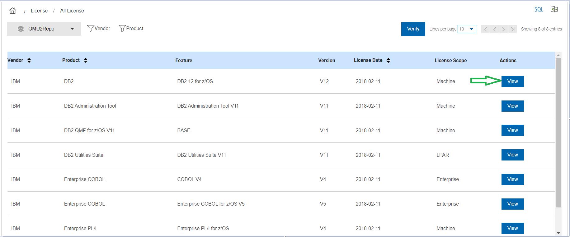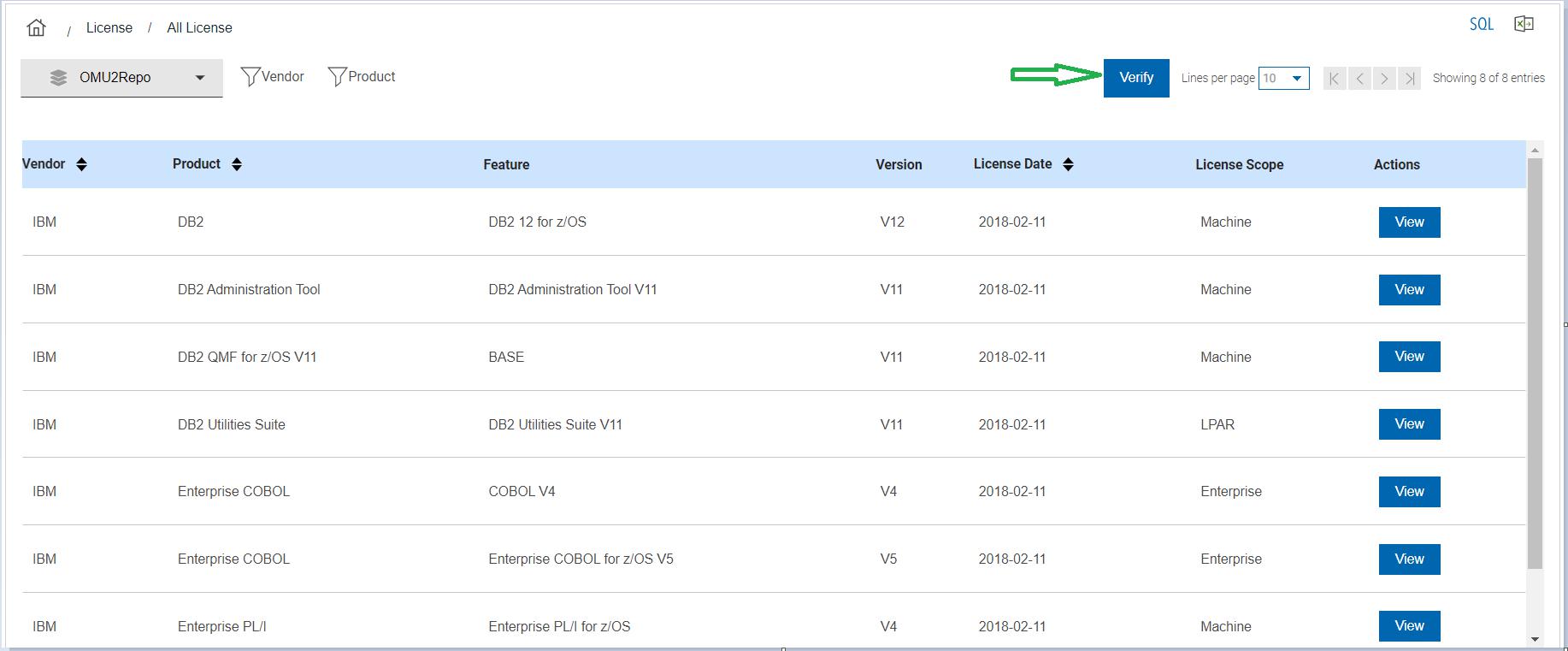 - On the All Licensed Products page, click Verify to verify the licensed data.