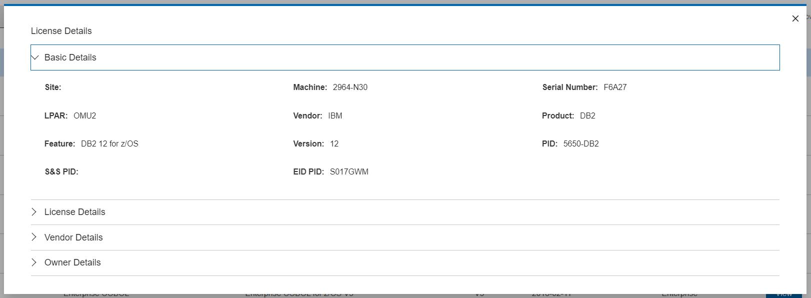 like Basic Details, License Details,Vendor and Owner Details as shown: