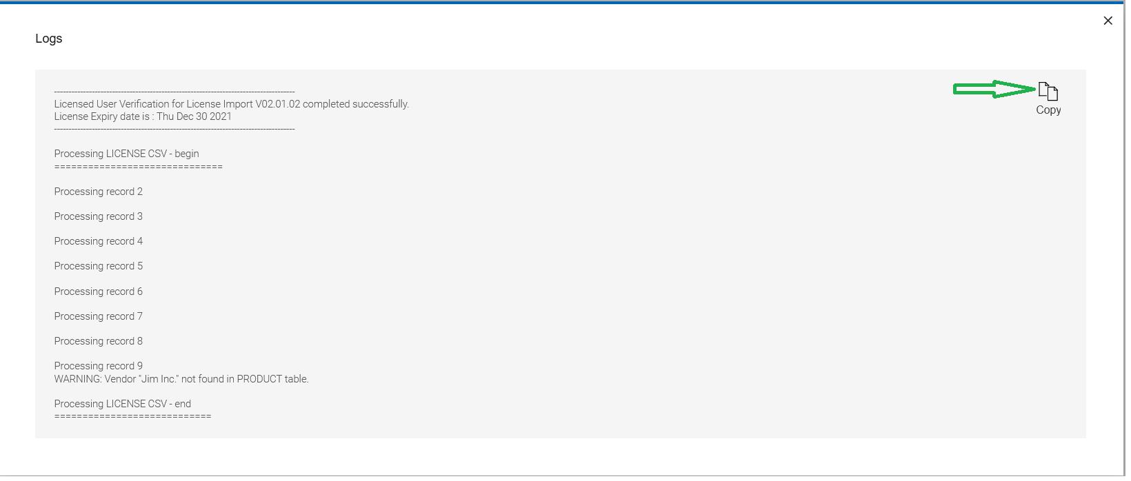 Once the verification process has completed successfully the “Verify” button is unavailable until another license import is performed.