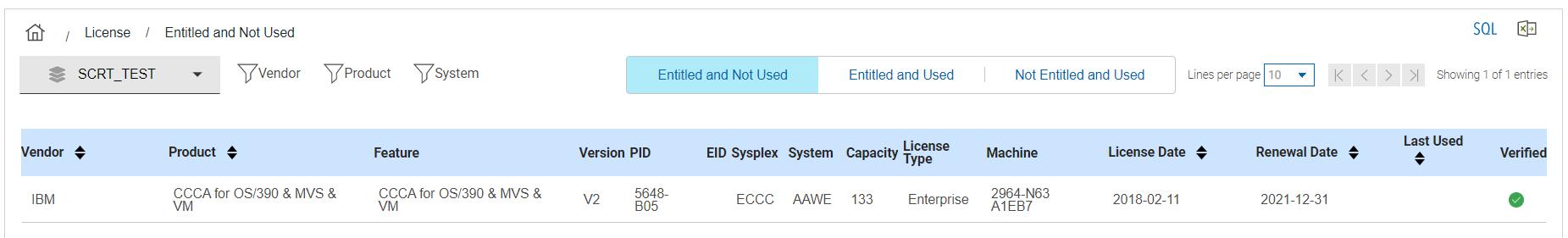 This report matches the products in the repository against the imported license data and validates the license expiry date and other important licensing parameters to list all the products with valid license. Use the available buttons to summarize the report into differenct combinations of "Entitled" and "Used/Not Used."