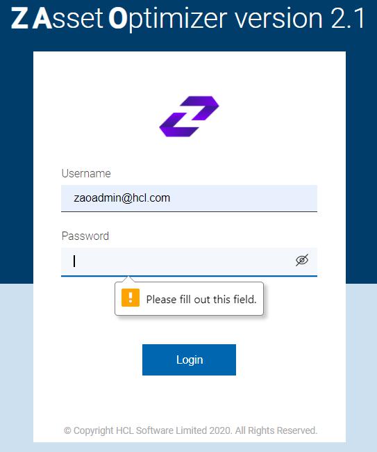 A ZAO administrator is responsible for creating users. After your credentials are created, the administrator will share your Username and the Password along with the URL to access ZAO V2.1.1. The URL is reported during the installation procedures.