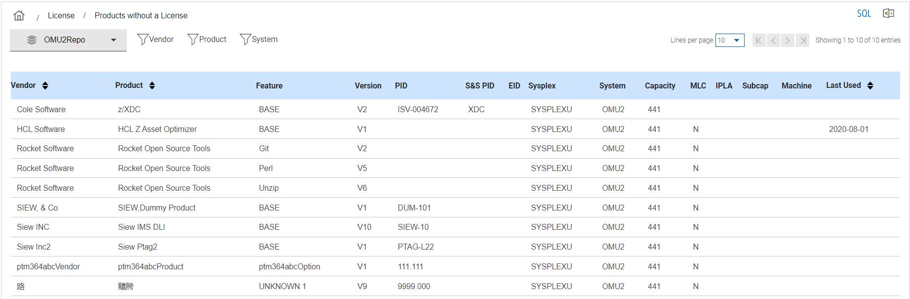 This report lists all the products present in the repository but which do not have matching license data in the imported license file. All products in the repository are matched against the uploaded license data and crucial parameters are considered for matching the products. The products which do not have license information are listed in this report.