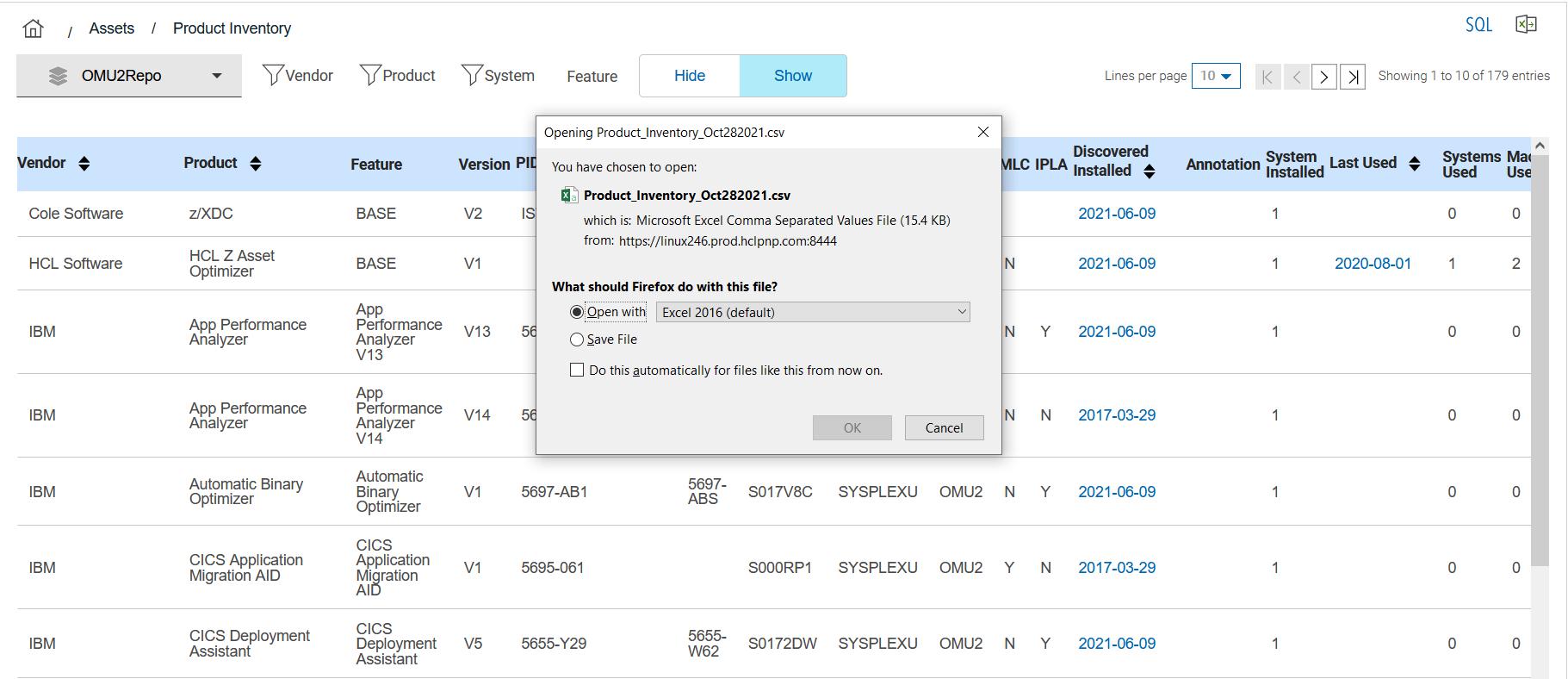 Each report has a download icon available for downloading the displayed report in CSV format.