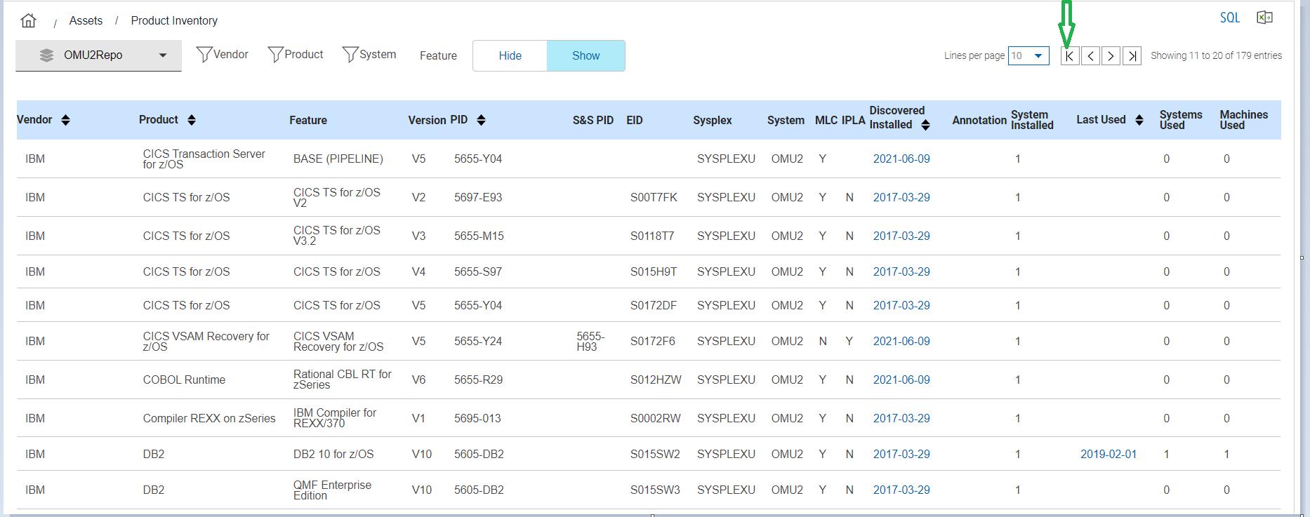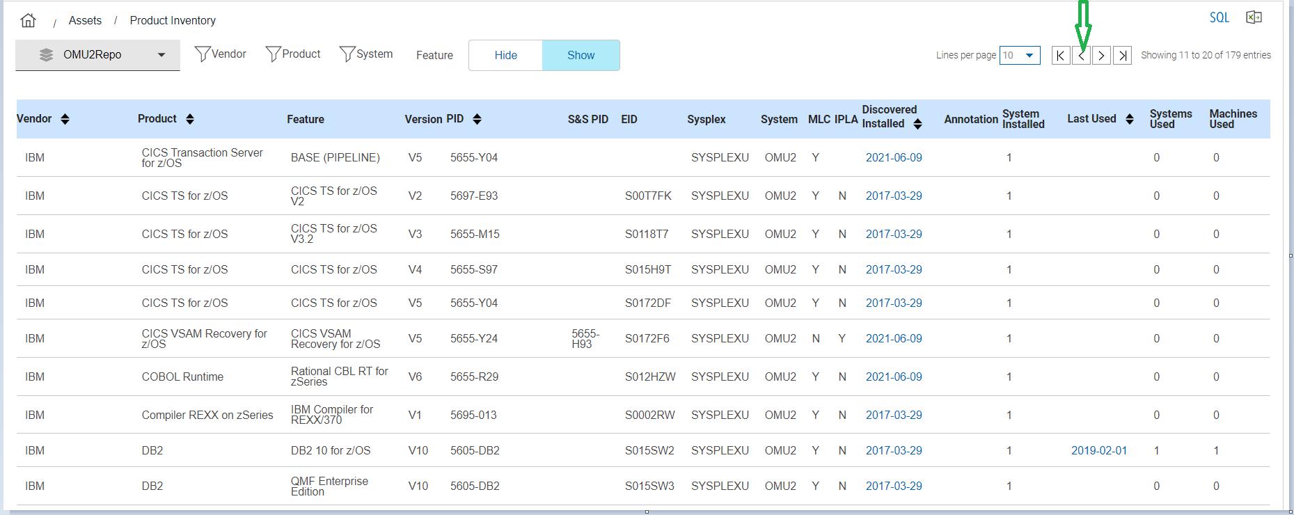 per page from the page selection icon. Figure 5. Records displayed per page