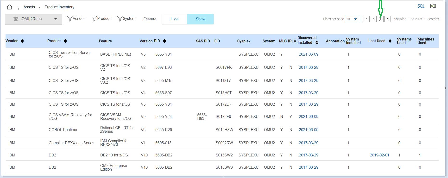 Click Next to move to the next page of the report. Figure 4. Next page button