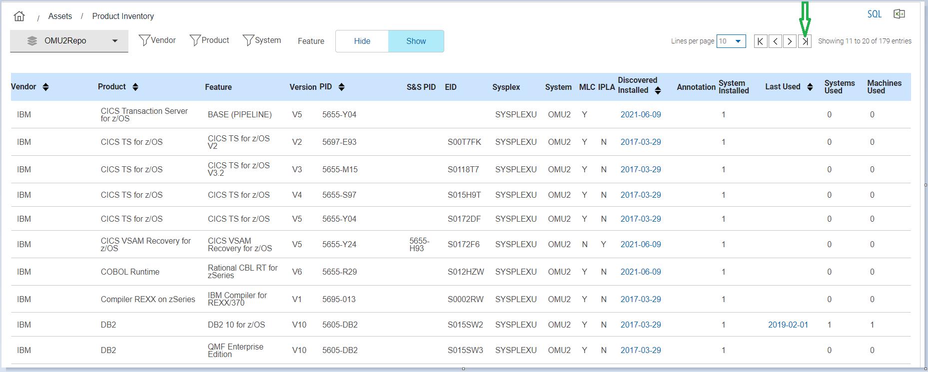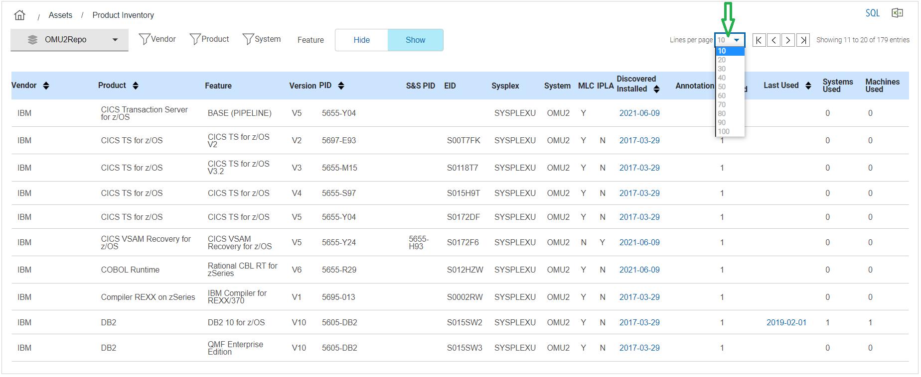 Starting from 10 records per page, you can select up to 100 records to be displayed