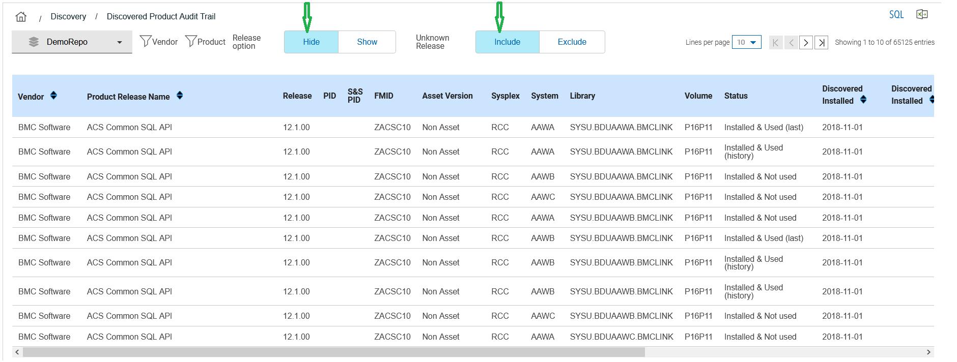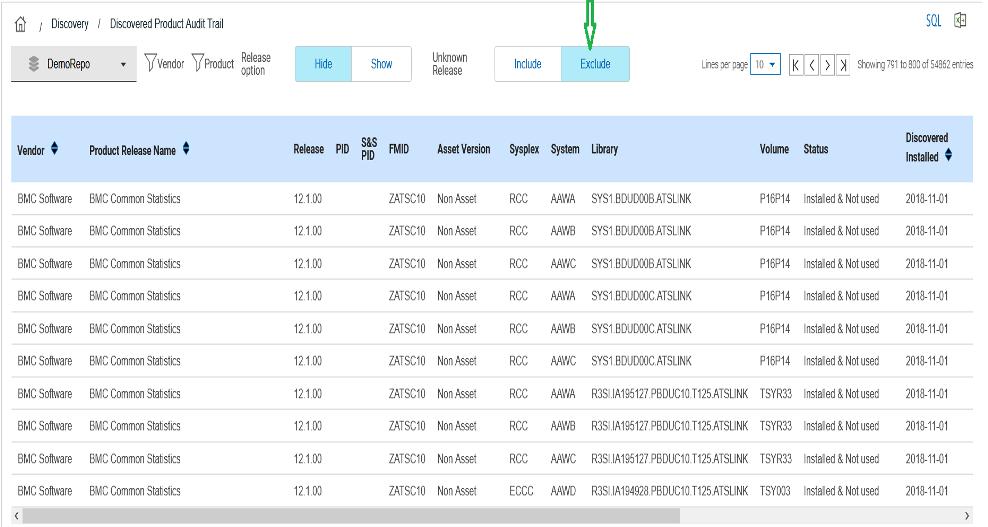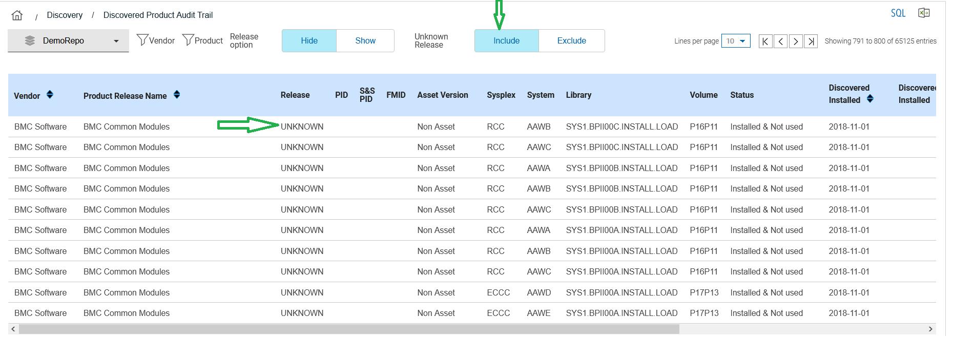 report. Figure 7. Discovered Product Audit Trail toggle filter - Unknown
