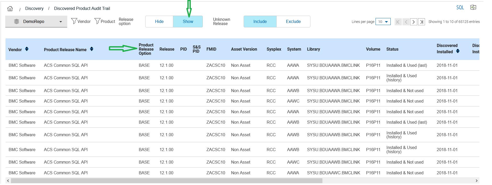 be removed from the report by toggling back to the Hide button. Figure 6. Product Audit Trail Report - Release Option column enabled
