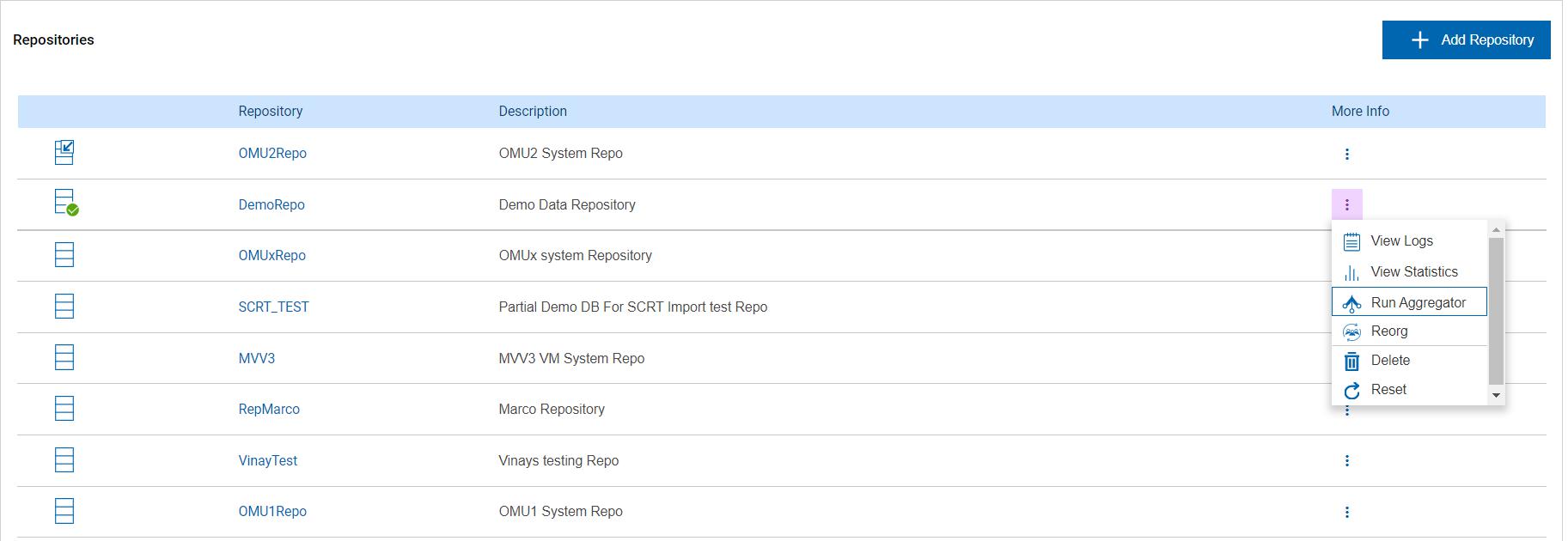 Figure 3. Repositories - Administrator options