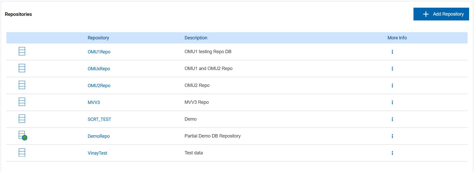 Repositories.The Repositories page is displayed:Figure 2. Repositories selection