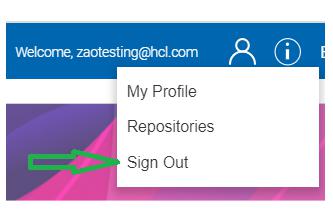 Sign Out About this task To sign out from the ZAO V2.1.1 application, click on Sign Out as shown here. You are then logged out of the application and the Login screen appears to login. Figure 1. Sign out