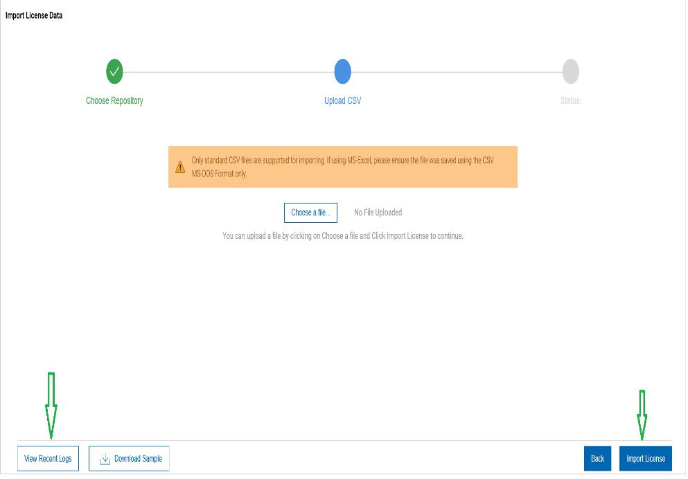 to upload and then click Import License to proceed.