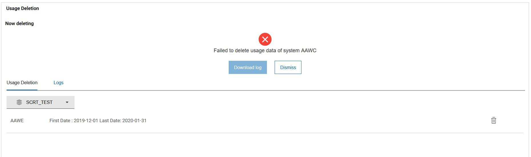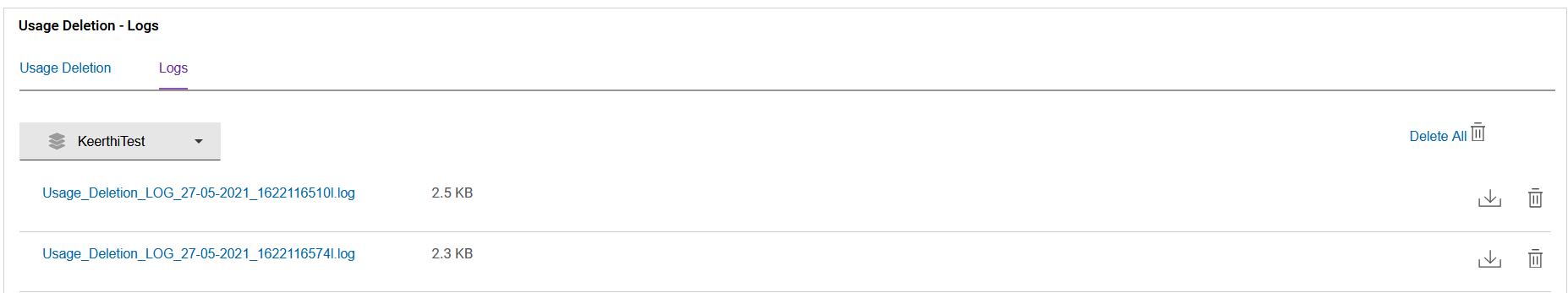 Figure 8. Usage Deletion - Log files
