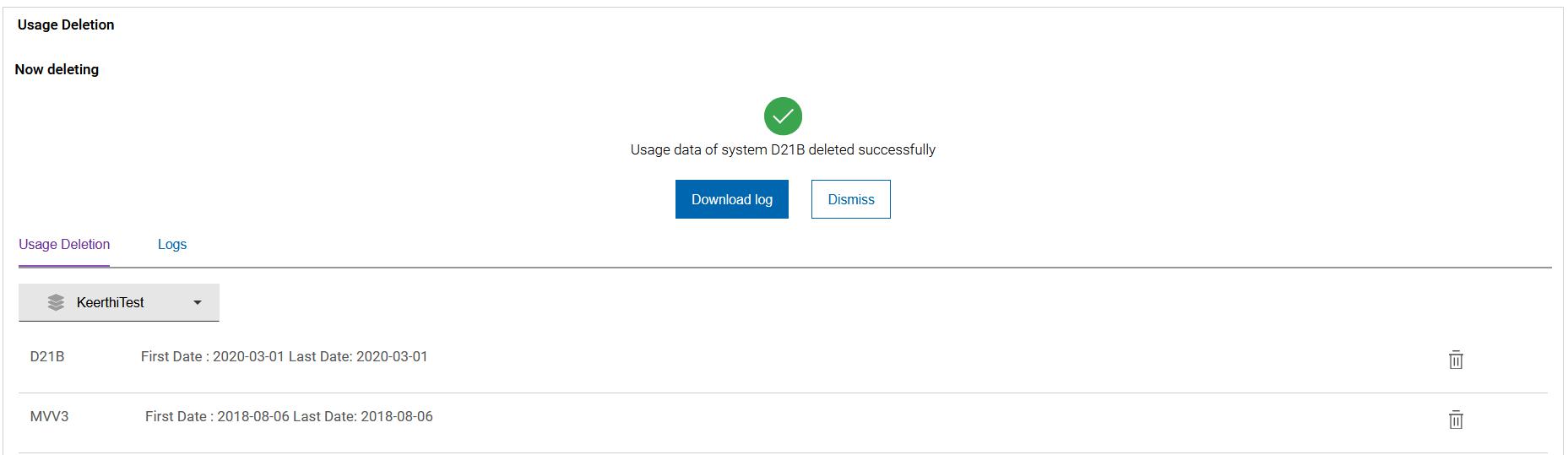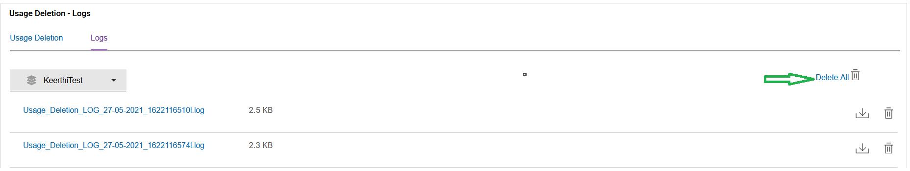 Figure 9. Usage Deletion - Delete all log files
