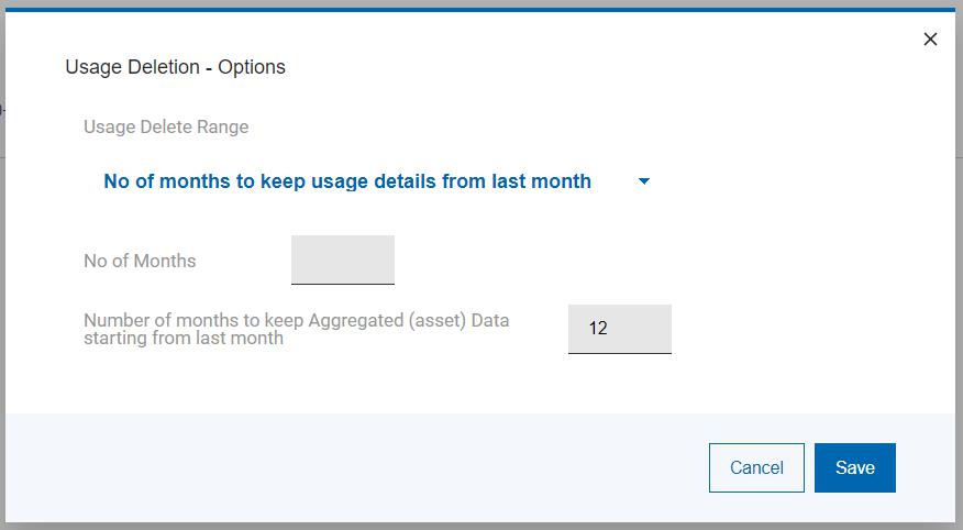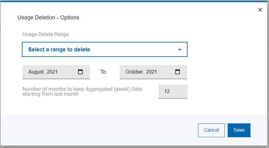 - Number of months to keep usage details starting from last month, or you can select a date range to delete usage data from.