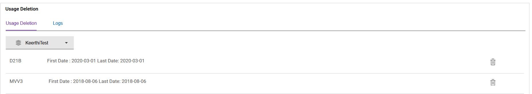 - Click on Usage Deletion.