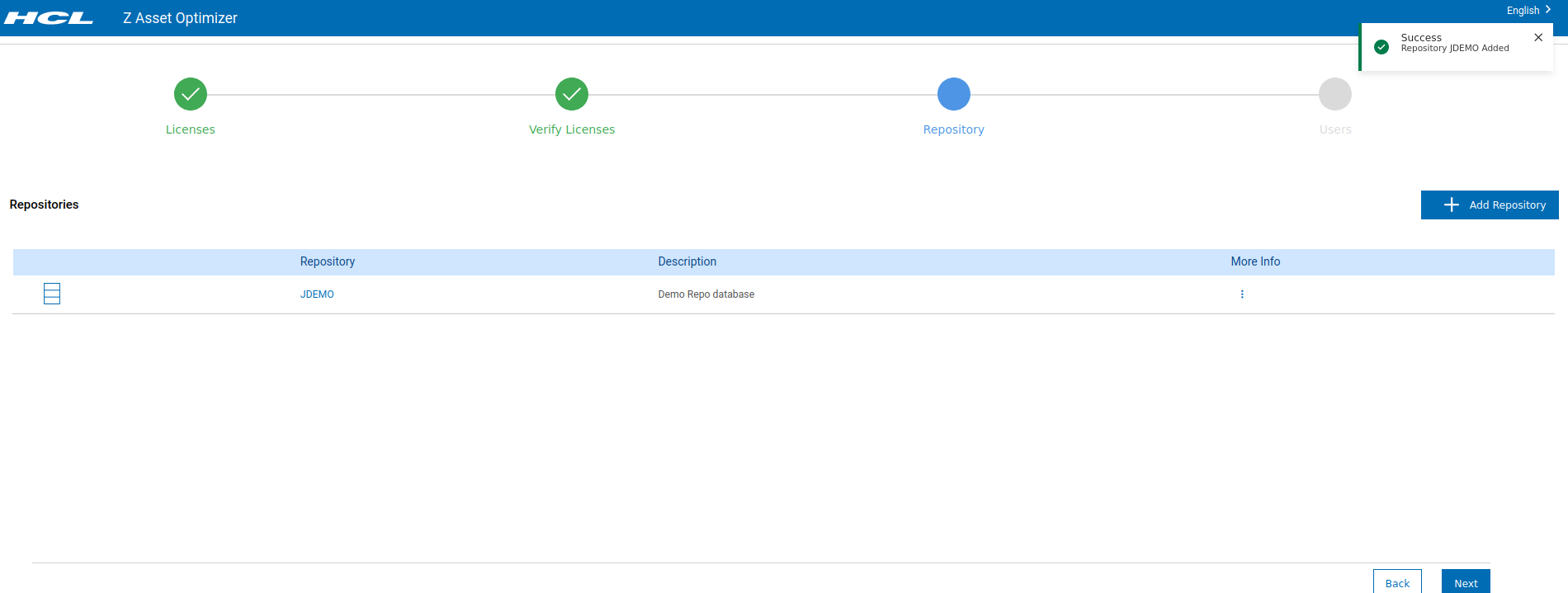 The Repository page is displayed. You need to create at lease one database repository that can be used for imported data.