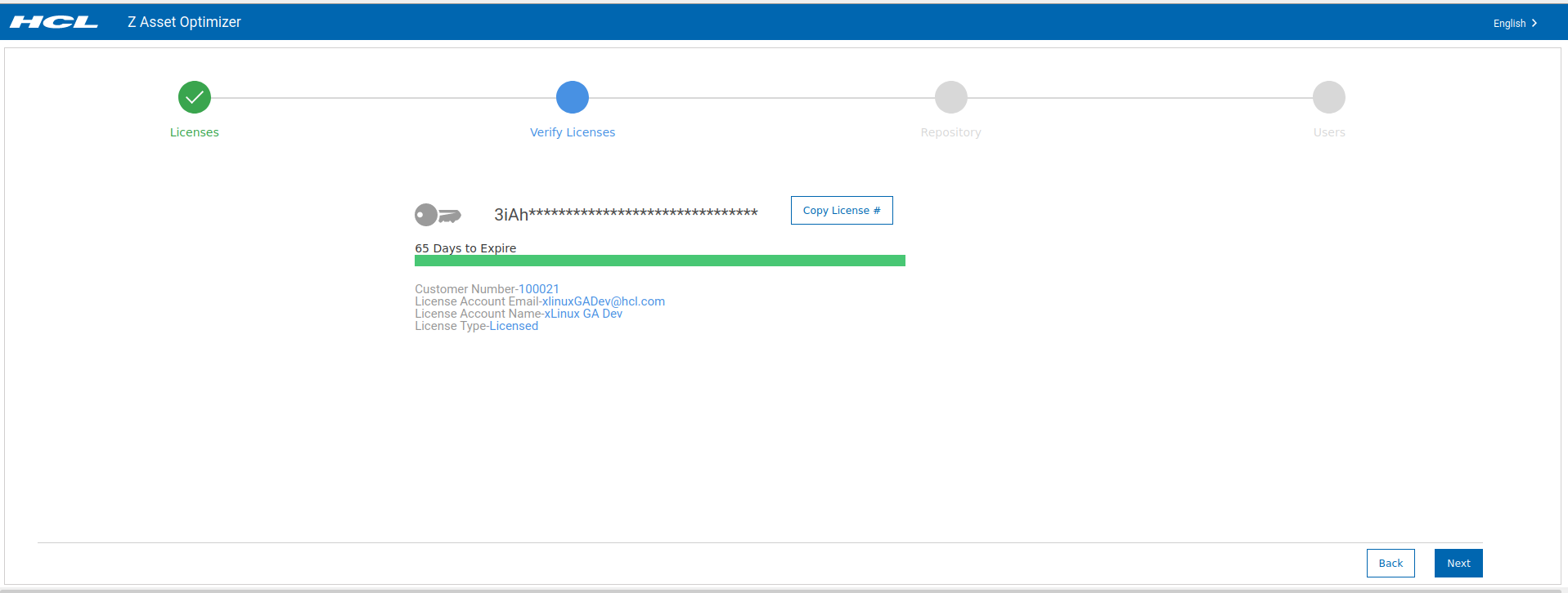 Once you have successfully logged into the ZAO V2.1.1 UI website, The Licenses page is displayed with the license key details.