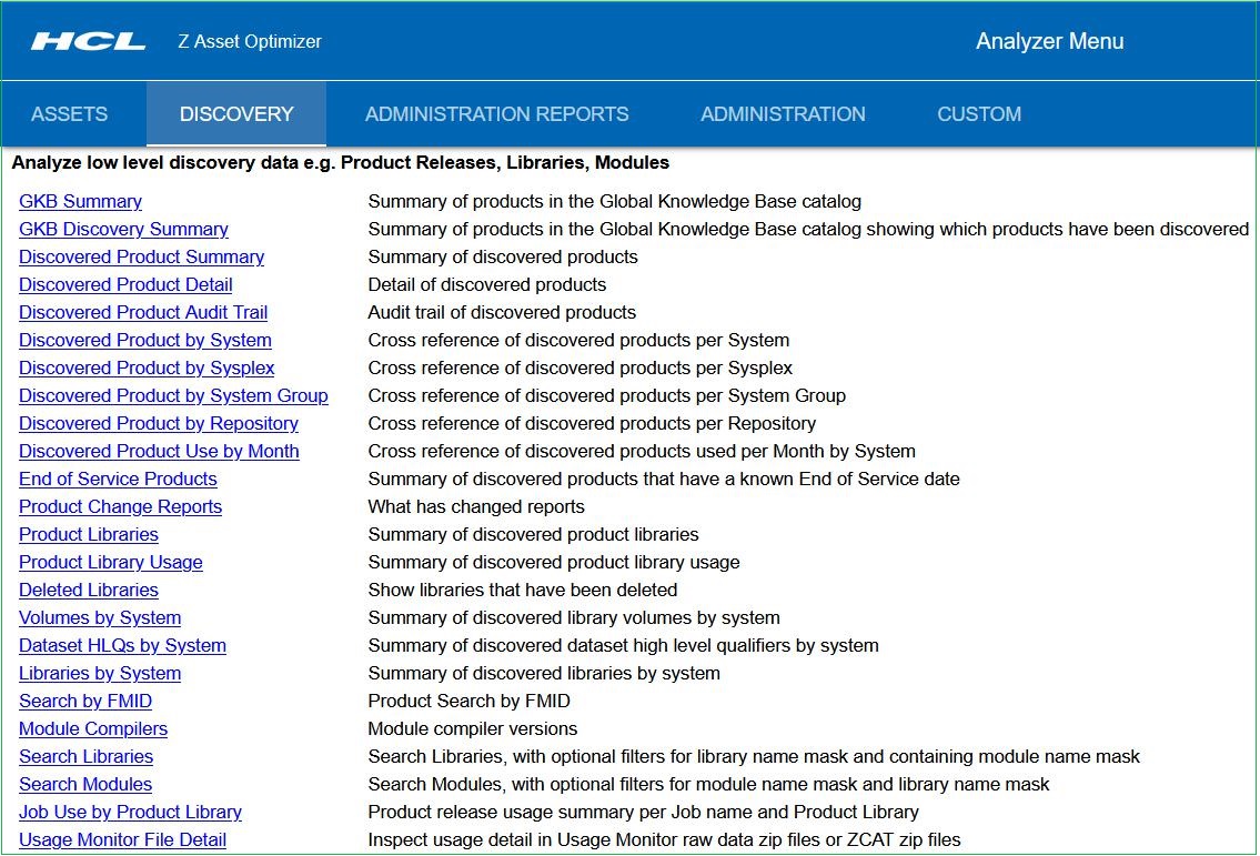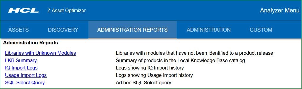 With the Analyzer reporting utility, you can log in with a browser to gain access to the Analyzer Asset, Discovery, and Administration reports and to any Custom reports that you create.