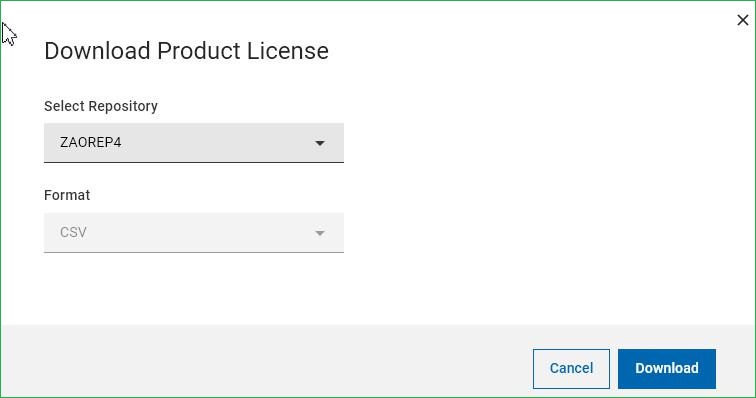 The above screen is displayed when you select the Download Product License report. When you press the blue Download button the report will run with the output saved to the browser download location.