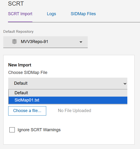 Select the SIDMap Files tab and then click the Upload button and