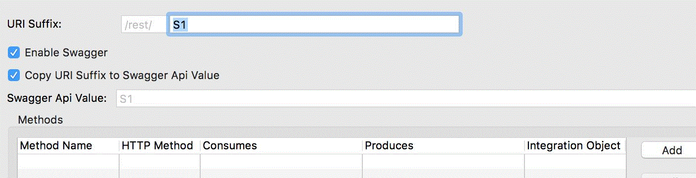 not want to include Swagger support. By selecting Copy URI Suffix to Swagger Api