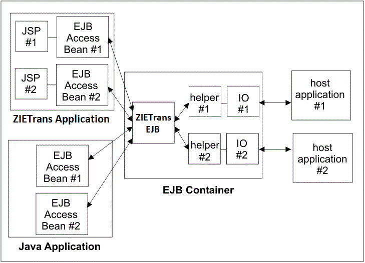 - ZIETrans EJB。ZIETrans EJB は、ステートフル・セッション EJB として実装されます。