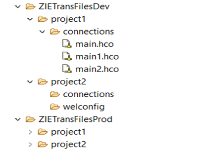 With this feature, the user can configure the main.hco and zietranswelcfg.xml outside the ZIETrans application. It replaces the content of the connection file or config file according to their production or development requirements.