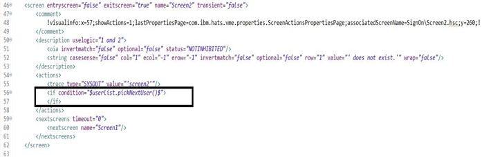 - To pick the next user, the below code must be added manually in the actions of all