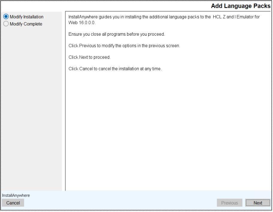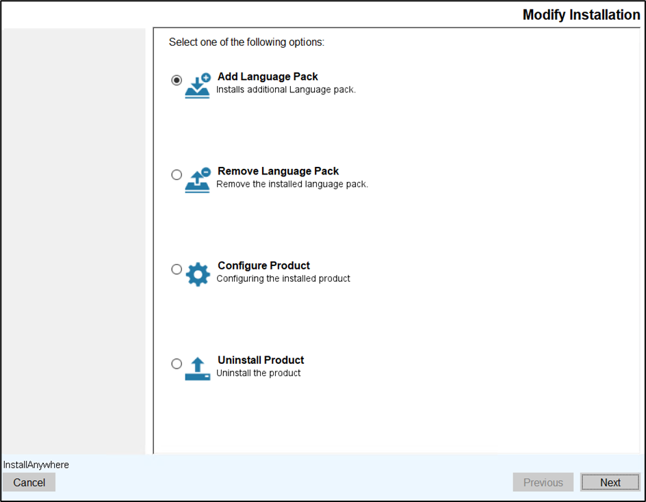 - As shown in the image below, the already installed language pack(s) will be disabled.