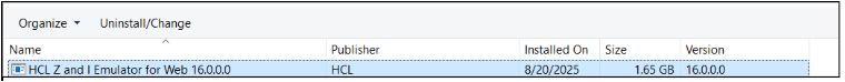 3. Select the installed Z and I Emulator for Web and click Uninstall/Change.
