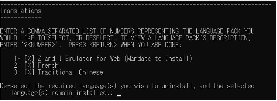 - To remove multiple language packs, enter the numbers separated by comma(,).