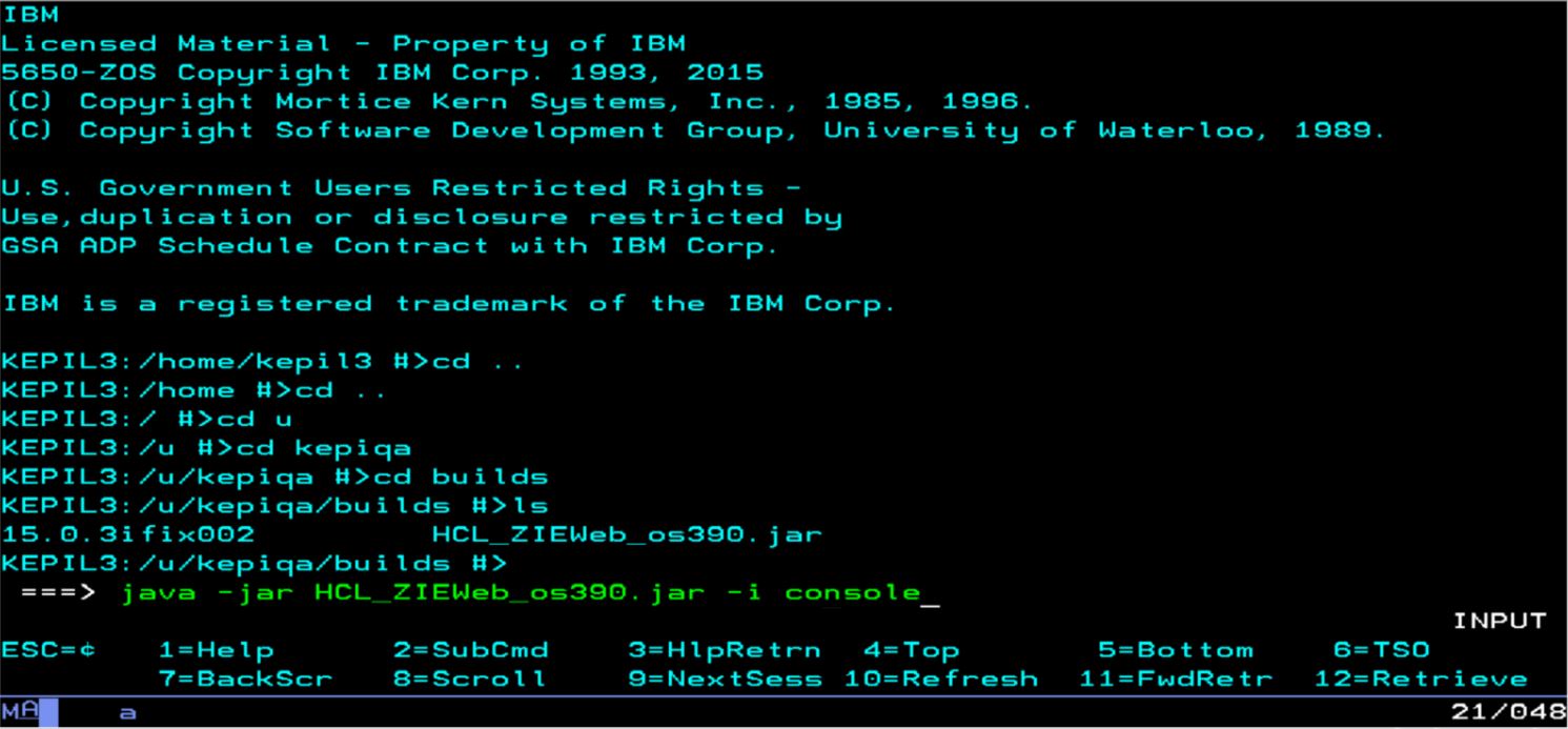 - Copy the installer jar “HCL_ZIEWeb_os390.jar”to z/OS machine.